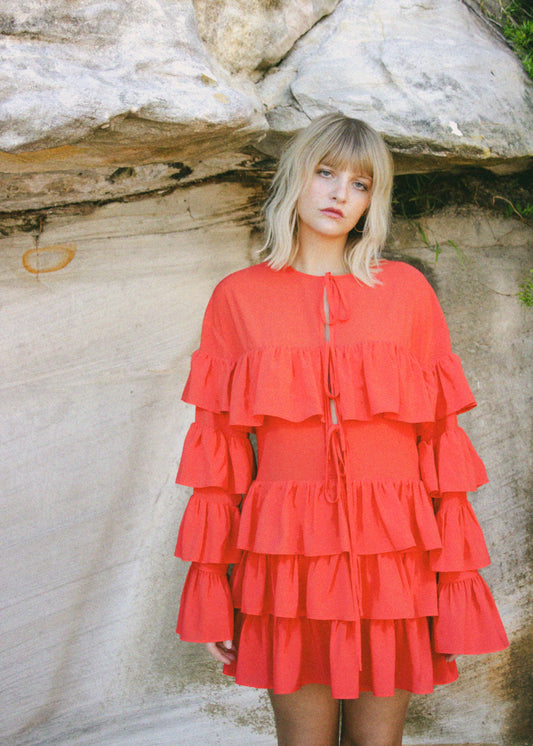 Cascada Ruffle Mini Dress | Red
